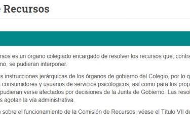 La Comisión de Recursos es el órgano colegiado encargado de resolver los recursos que se puedan interponer contra las resoluciones del Órgano de Gobierno del Colegio y los actos de trámite que determinen la imposibilidad de continuar el procedimiento o produzcan indefensión, sujetos al Derecho Administrativo.